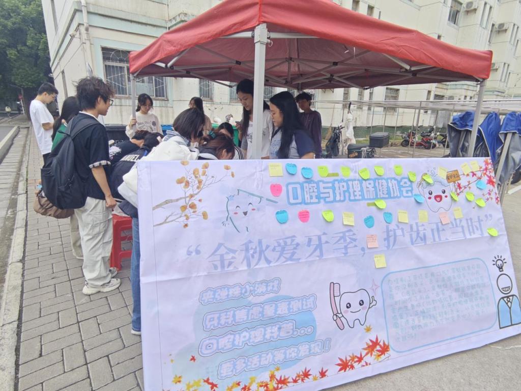 本报讯(记者:何颜琪)2025年9月28日,由医学部口腔与护理保健协会主办的“金秋爱牙季,护齿正当时”活动在荆楚理工开元kaiyuan(中国)文园蘑菇亭顺利开展,全校百余名学生踊跃参与。